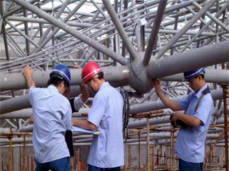 该广告牌位于东莞市莞城区八达路澳南工业楼楼顶,委托方要求我院对该广告牌作结构安全鉴定。我院与委托方协商制度了详细的检测方案,并派出了专业技术人员检查勘查队伍对该广告牌进行现场勘查、收集资料等。经现场检测,该广告牌外观形状为半圆形,牌面面积约340㎡,高度约8.8m,结构形式为钢结构,钢构件外观完整,受力良好,因广告牌常年受日照雨淋,部分区域存在油漆脱落,锈蚀现象。在合同规定日期内,相关技术人员根据现场勘查资料及计算机数据对该广告牌进行了结构安全安全鉴定评级,编写了严谨的安全鉴定报告交建设部门审查,并向委托方提出了合理的广告牌修复措施。